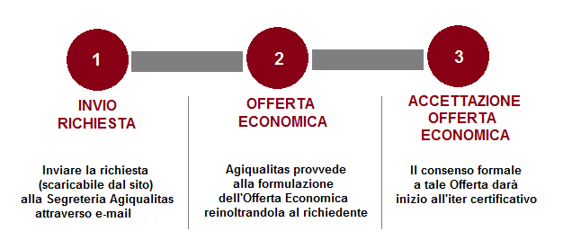 1) La Richiesta di offerta per servizi certificativi di avvio dell’iter certificativo deve pervenire, presso la Segreteria Agiqualitas, attraverso e-mail o lettera.